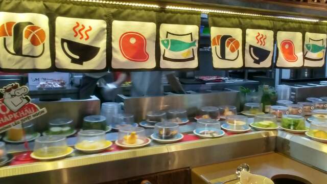 키치키치의 가장 큰 매력은 회전식 컨베이어 벨트를 활용한 음식의 운반입니다. 한국에도 같은 방식의 회전 초밥 집들이 있으니 우리들에겐 낯설지가 않죠. 차이는 한국이나 일본과는 달리 초밥 대신 샤브샤브 식재료가 내 앞을 지나간다는 것 뿐입니다. 방문하시기 전에 한 가지 팁을 드리자면, 최대한 음식이 출발하는 지점에서 가까운 자리에 자리를 잡으시라는 거예요. 중간 이후에 앉아보니 앞사람들이 배를 채우기 전까지 나에게 오는 음식들 이라곤 온갖 풀.......